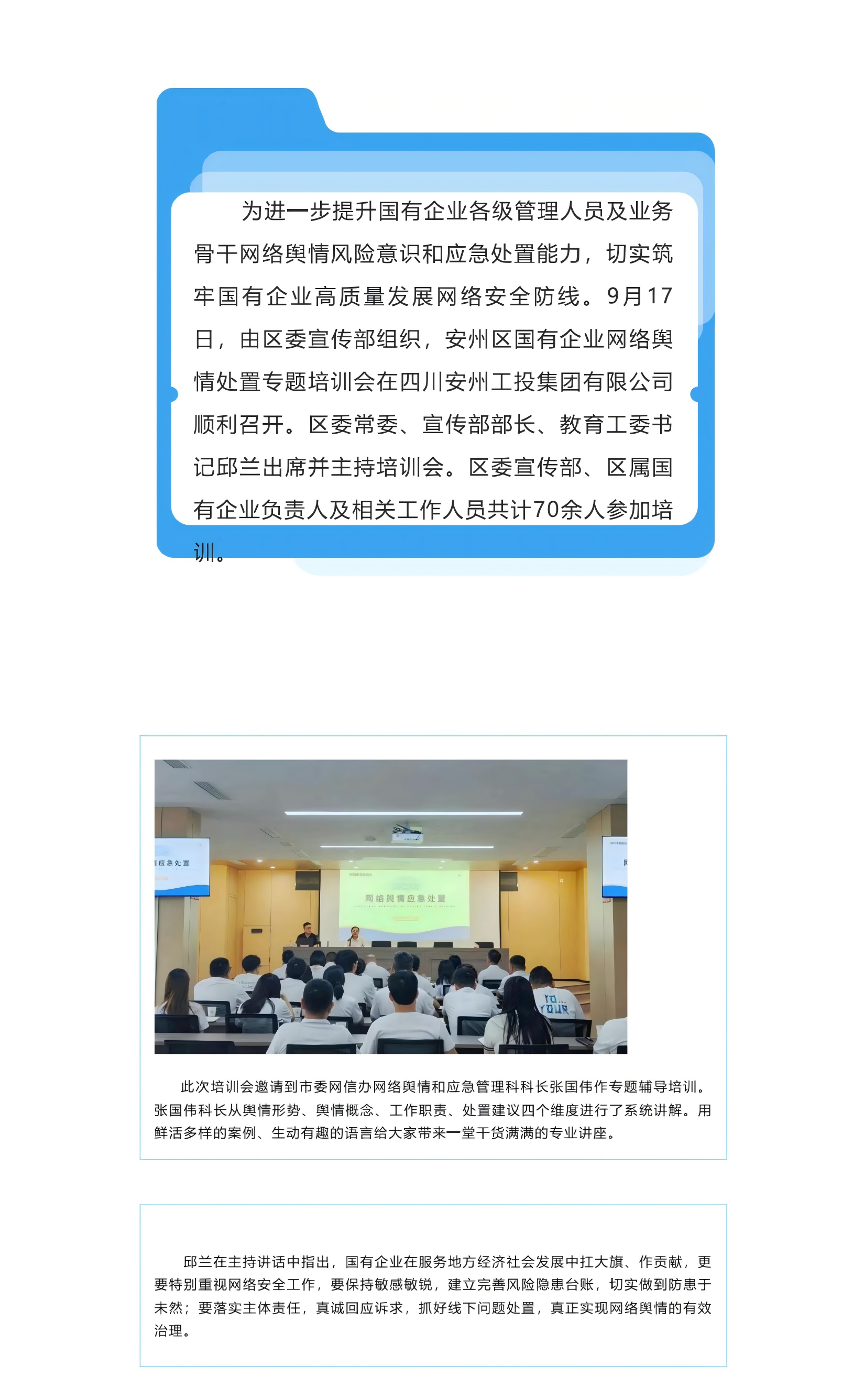 安州區(qū)國有企業(yè)網(wǎng)絡(luò)輿情處置專題培訓(xùn)會順利開展